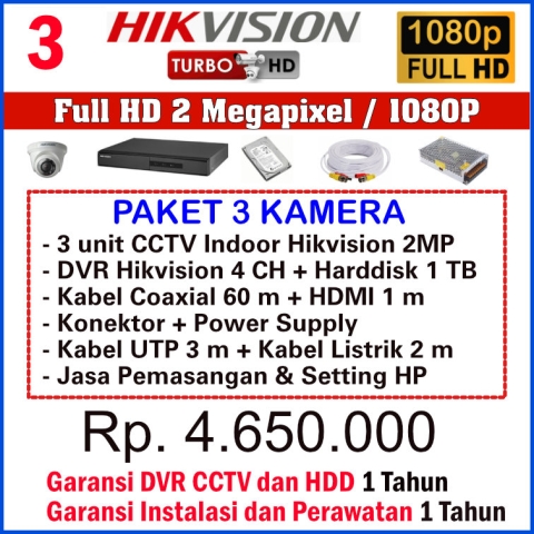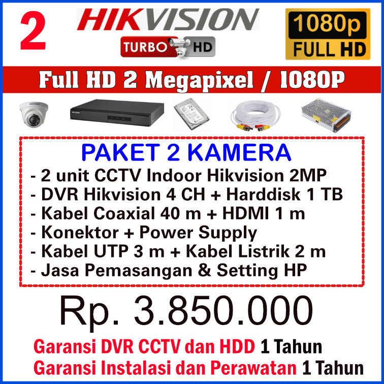 PAKET CCTV HIKVISION TURBO HD FULL HD 2 MEGAPIXEL